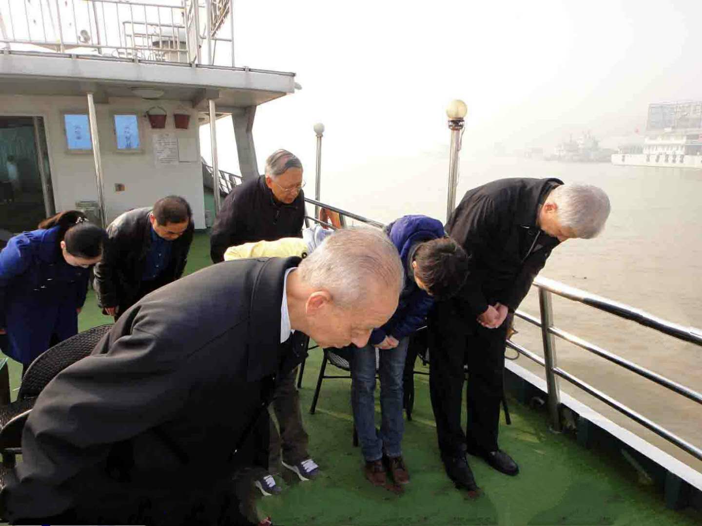 11.在汽笛声中将骨灰盒轻置江中、着陆河床,成为今后祭拜的庙宇。